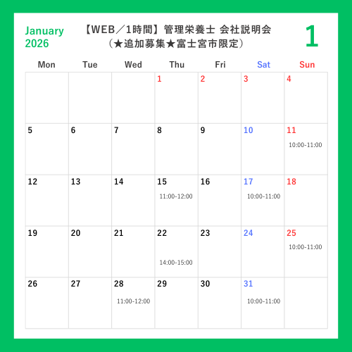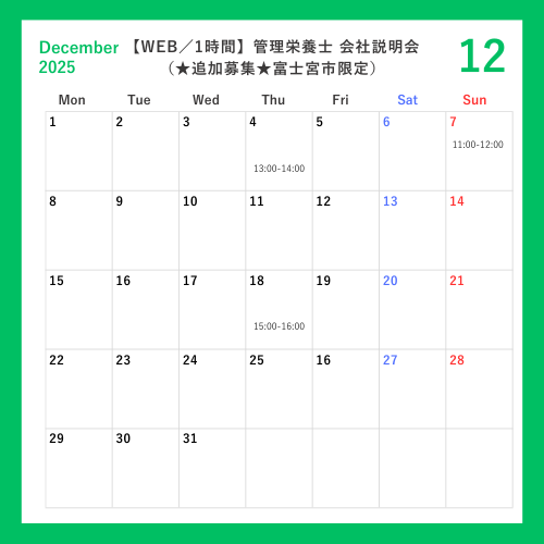 (学部学科不問/管理栄養士・栄養士のみ資格必須)