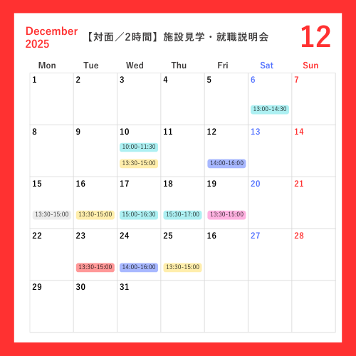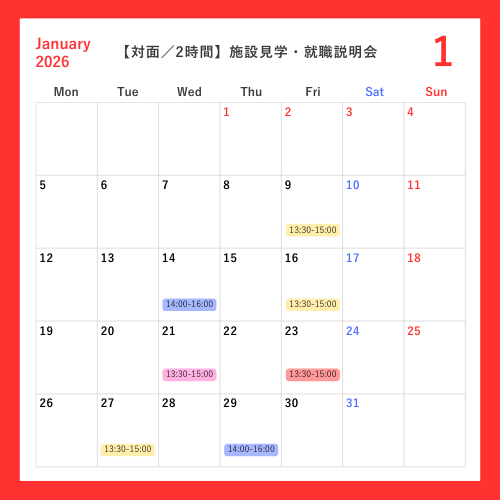 ※ご希望の施設をご選択いただき、個別に日程調整を致します。