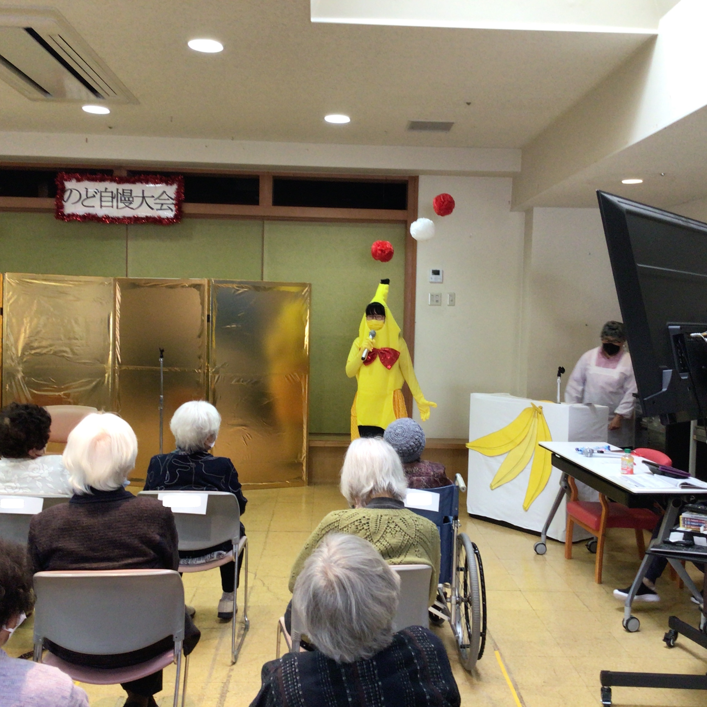 今回は司会の職員が何故かバナナの恰好をしております